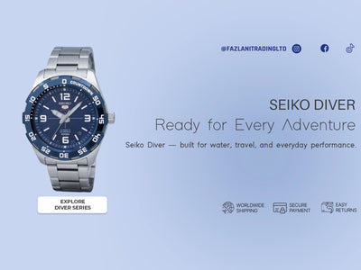 A reliable Seiko Diver designed for water, travel, and everyday durability — the perfect companion for the season ahead.